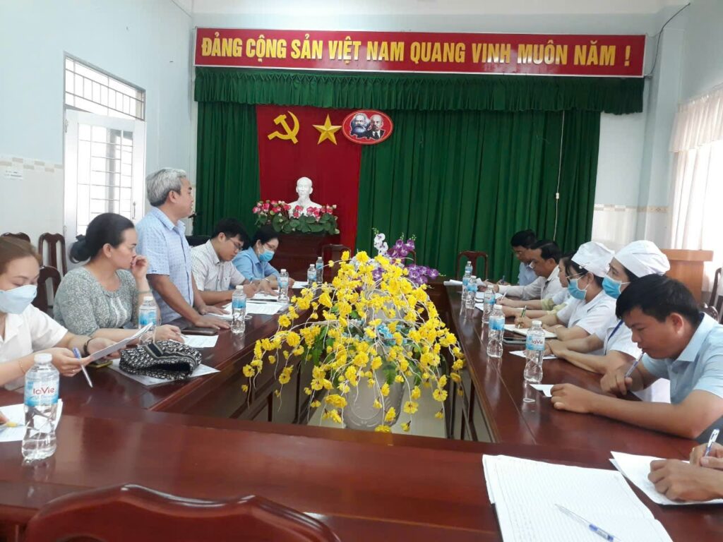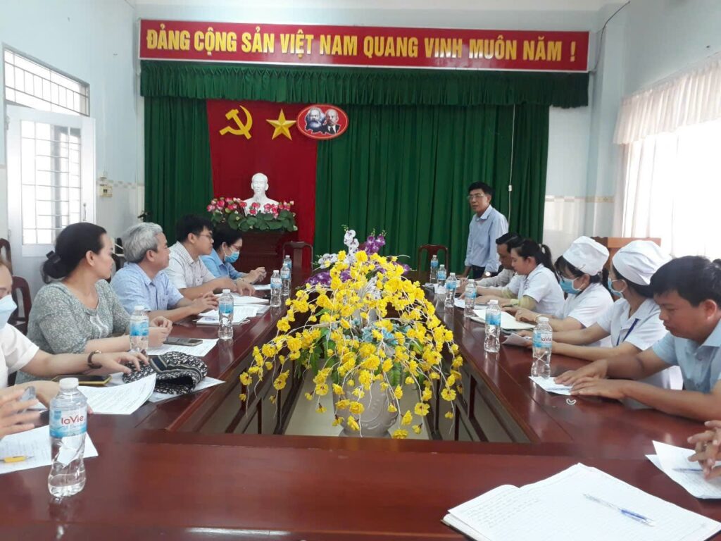 Tiếp đoàn đến giám sát có BS.CK1 Huỳnh Minh Hoàng – Phó Giám đốc Bệnh viện đa khoa huyện Vĩnh Thạnh; cùng lãnh đạo phòng KHTH; Khoa Ngoại – Sản; Khoa Nhi.