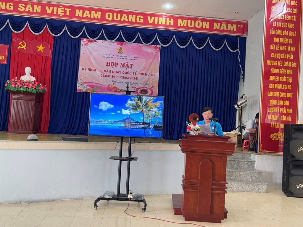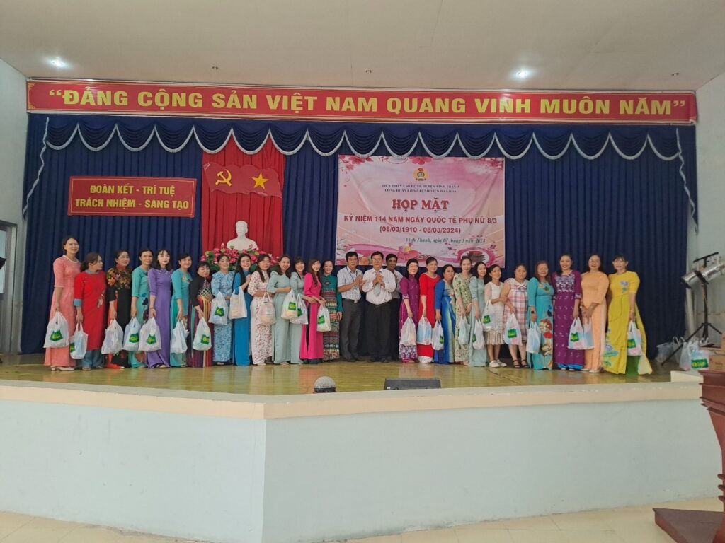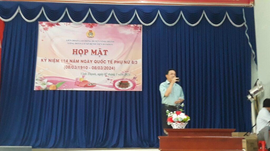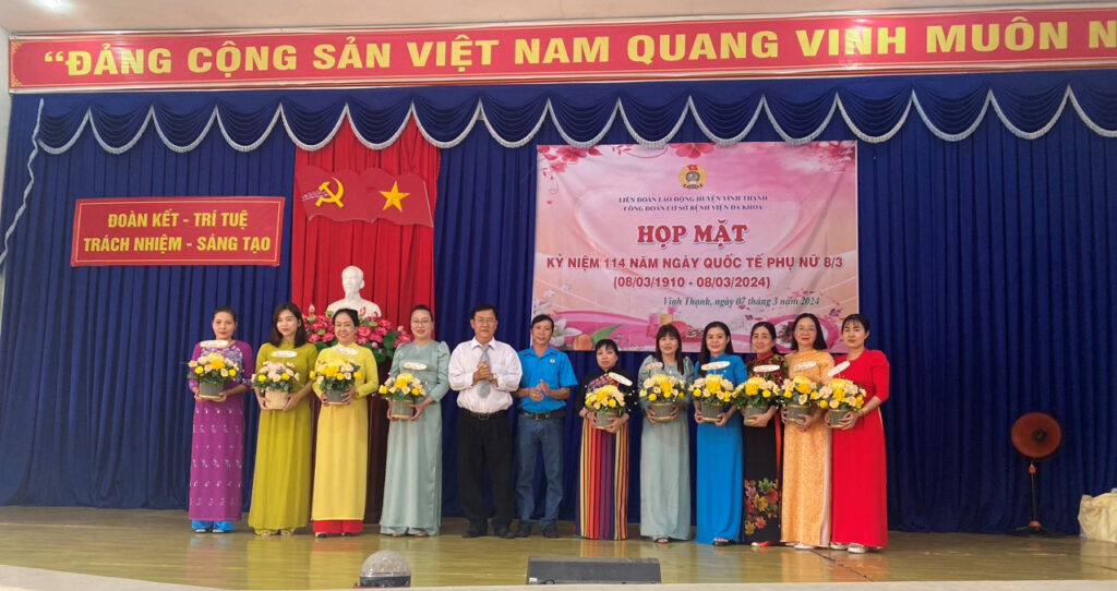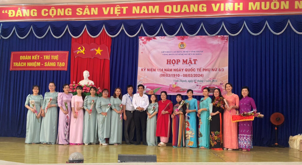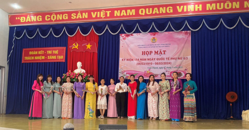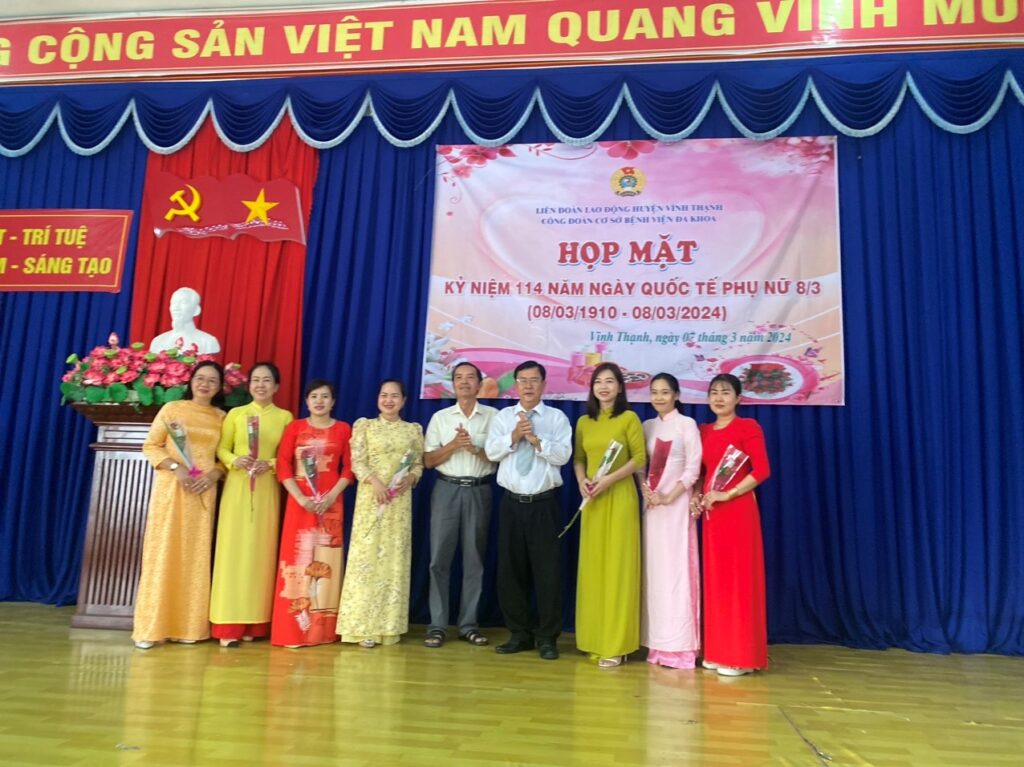 Nhân dịp kỷ niệm Ngày Quốc tế phụ nữ 8/3, được sự thống nhất của Ban Thường vụ Liên đoàn Lao động huyện Vĩnh Thạnh và Ban Chấp hành Đảng bộ Bệnh viện Đa khoa, chiều ngày 07/3/2024, tại Hội trường Bệnh viện Đa khoa huyện Vĩnh Thạnh, Ban chấp hành Công đoàn cơ sở Bệnh viện đa khoa đã long trọng tổ chức kỷ niệm 114 năm ngày Quốc tế Phụ nữ (8/3/1910 – 08/3/2024).