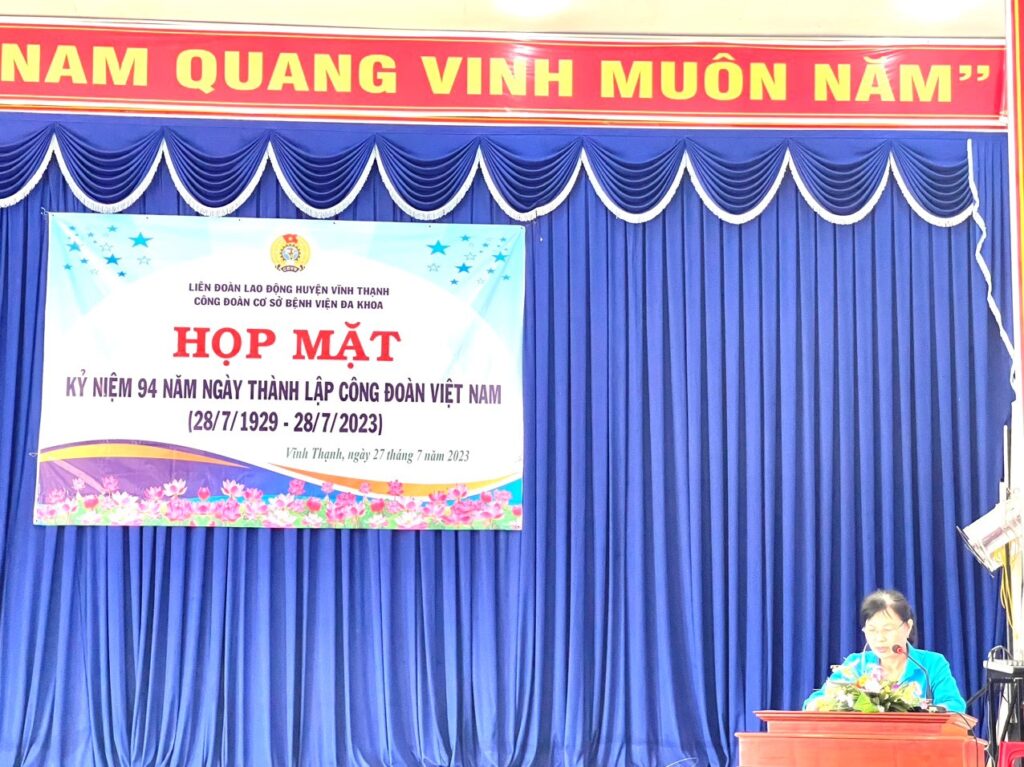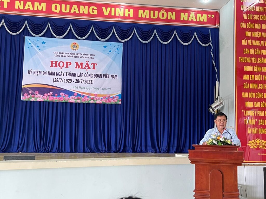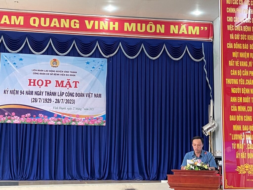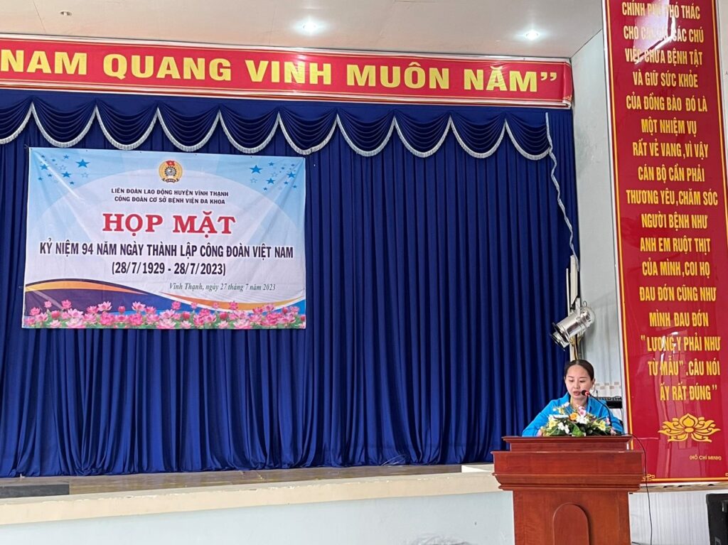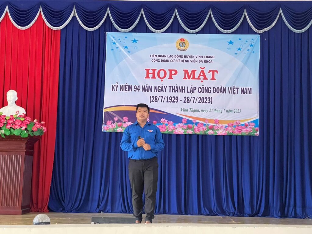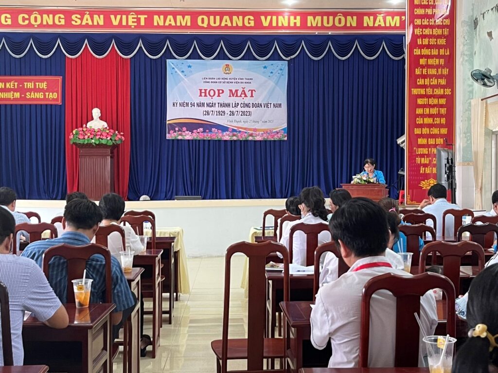 Được sự thống nhất của lãnh đạo Liên đoàn Lao động huyện Vĩnh Thạnh và lãnh đạo Đảng bộ Bệnh viện Đa khoa. Ban Chấp hành Công đoàn cơ sở Bệnh viện Đa khoa xây dựng chương trình kế hoạch tiến hành tổ chức buổi họp mặt kỷ niệm 94 năm Ngày thành lập Công đoàn Việt Nam (28/7/1929 – 28/7/2023) trong các cán bộ, viên chức và người lao động của Bệnh viện.