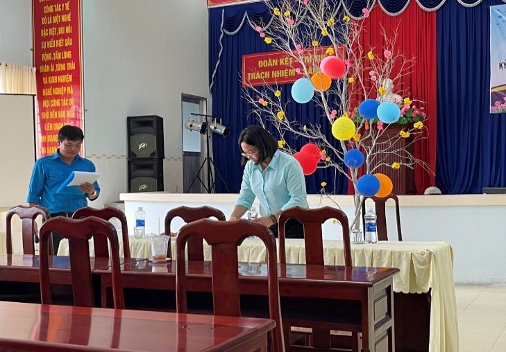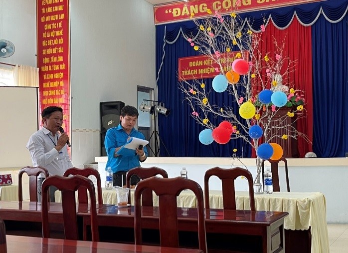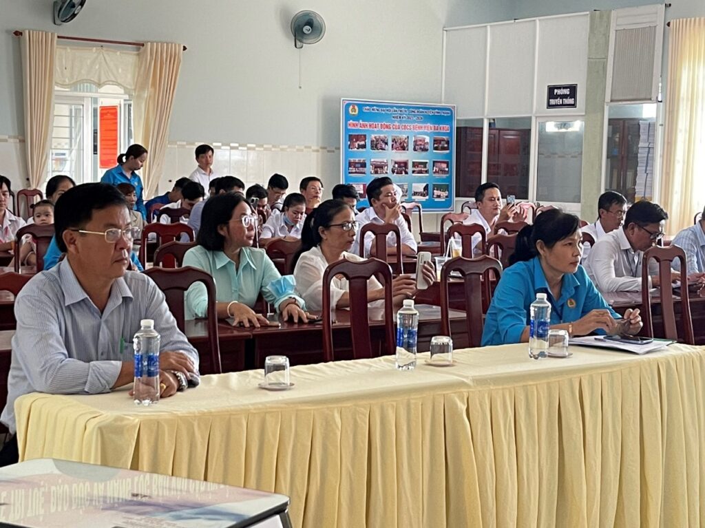Ảnh: DS Trương Thị Phương Thảo – Phó chủ tịch Công đoàn trình bày kế hoạch phát động phong trào thi đua nhân chào mừng 20 năm thành lập huyện Vĩnh Thạnh