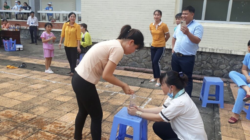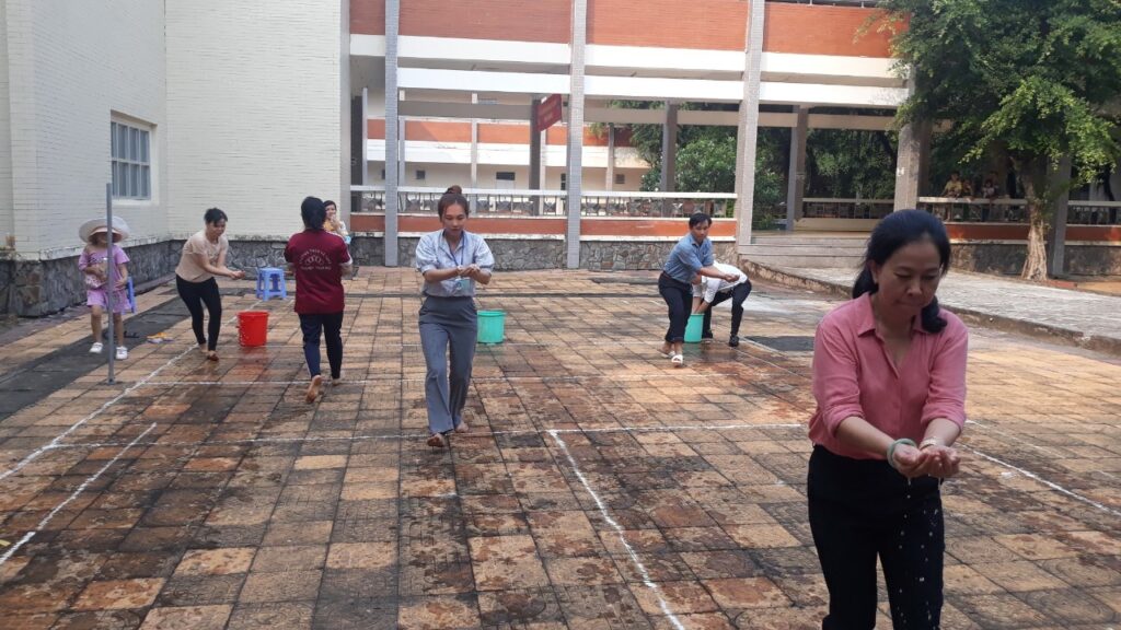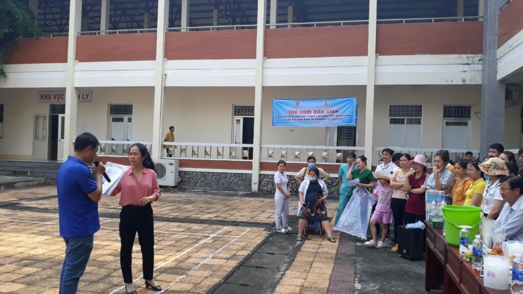 Hoạt động diễn ra với các trò chơi dân gian: Hỏi xoáy đáp xoay; Nhảy bao bố; Tiếp nước tiền phương và trò chơi Hai người 3 chân.
