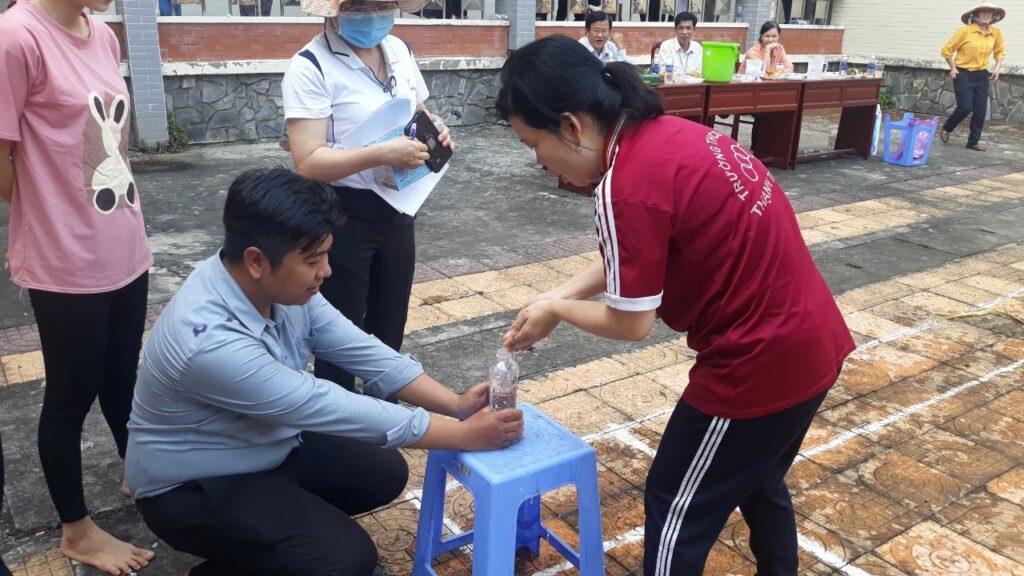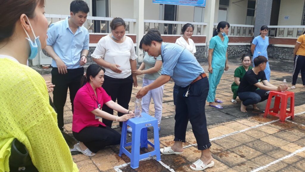 Ảnh: BSCKI Nguyễn Kim Trinh – Phó Giám đốc – Chủ tịch Công đoàn trao giải phần thi “Tiếp nước tiền phương”