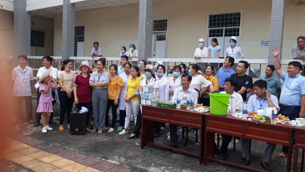 Ảnh: BSCKI Đỗ Khắc Trang – Bí thư Đảng bộ – Giám đốc Bệnh viện, trao giải thưởng cho phần thi “Hỏi xoáy đáp xoay”