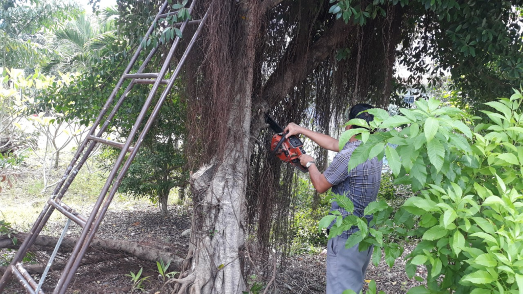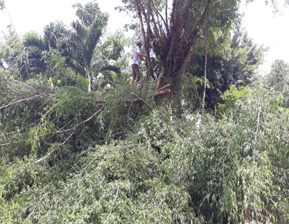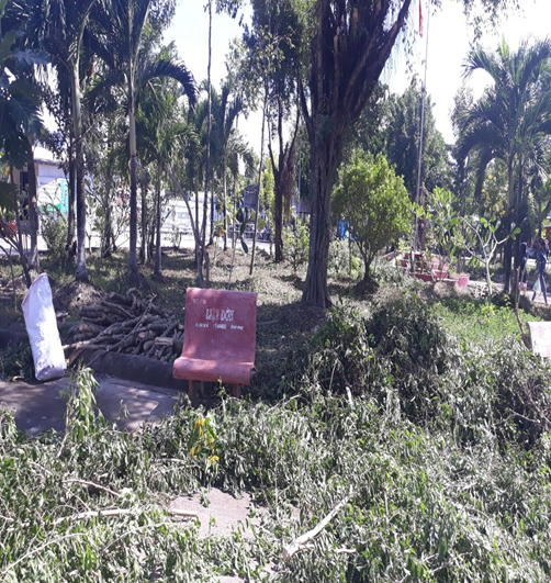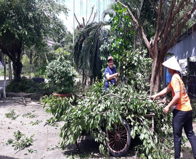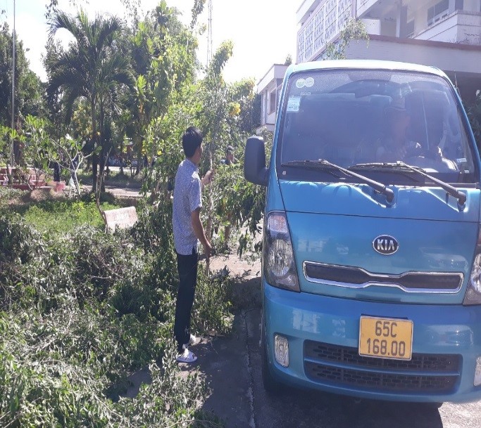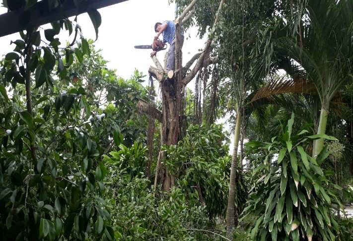 Tổ đã huy động được 2 cây cưa máy để cưa các cành cây và thuê 2 xe vận chuyển để vận chuyển các cành cây được cắt bỏ thu gom về phía sau hố rác của Bệnh viện và đốt theo quy định.
