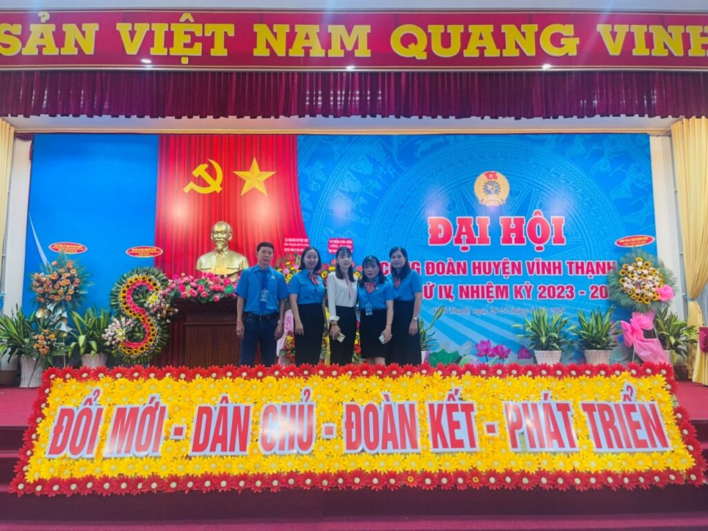 Về tham dự Đại hội Công đoàn huyện Vĩnh Thạnh lần thứ IV, nhiệm kỳ 2023-2028. Công đoàn cơ sở Bệnh viện Đa khoa theo phân bổ là 04 đồng chí đại biểu chính thức và 01 dự khuyết được Đại hội Công đoàn cơ sở Bệnh viện Đa khoa lần thứ V, nhiệm kỳ 2023-2028 bầu tham dự Đại hội cấp trên: