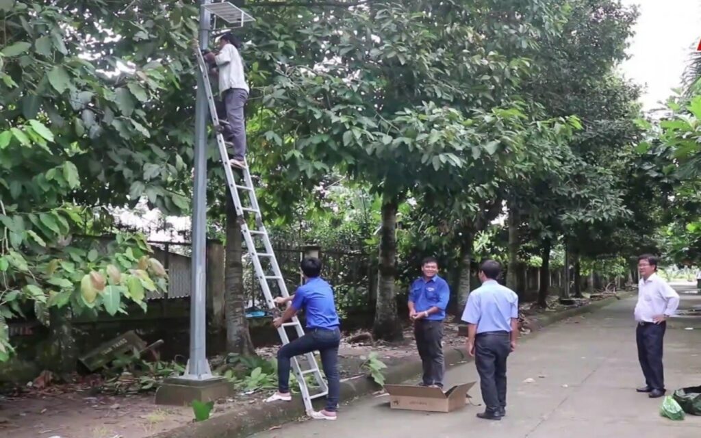 (Ảnh: BS CK1. Đỗ Khắc Trang chỉ đạo lắp đặt hệ thống đèn năng lượng mặt trời)