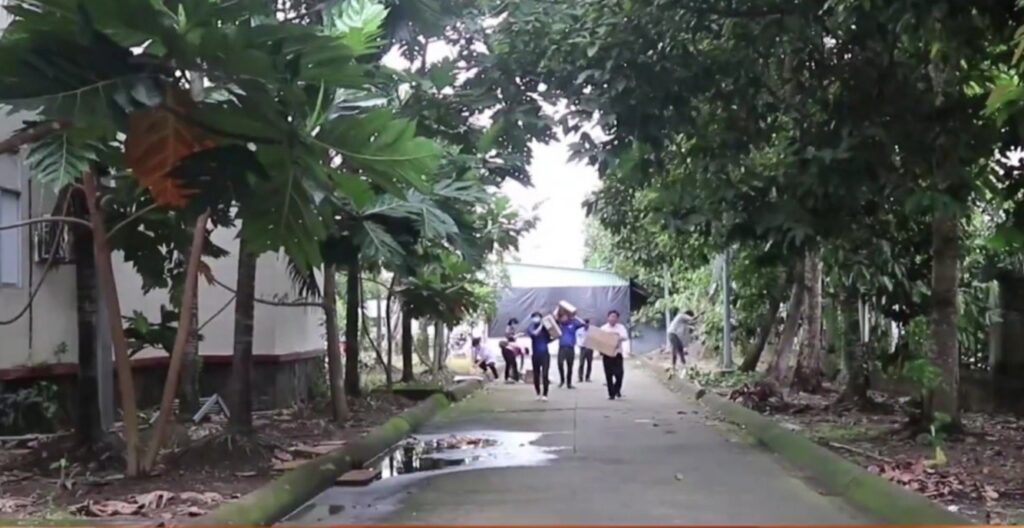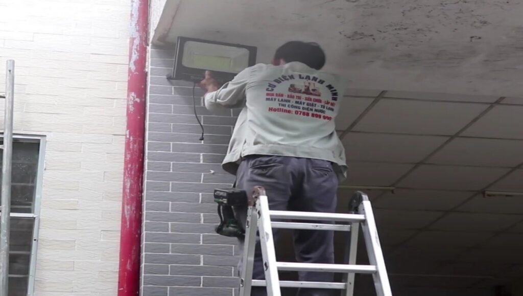(Ảnh: Công đoàn viên bệnh viện hỗ trợ lắp đặt đèn)