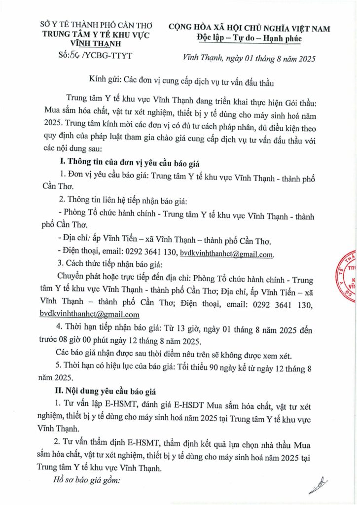 Thông báo: Trung tâm kính mời các đơn vị có đủ tư cách pháp nhân, đủ điều kiện theo quy định của pháp luật tham gia chào giá cung cấp dịch vụ tư vấn đấu thầu. 01/08/2025 admin Thông Báo 0 Download thông báo Please follow and like us: Lượt xen: 72