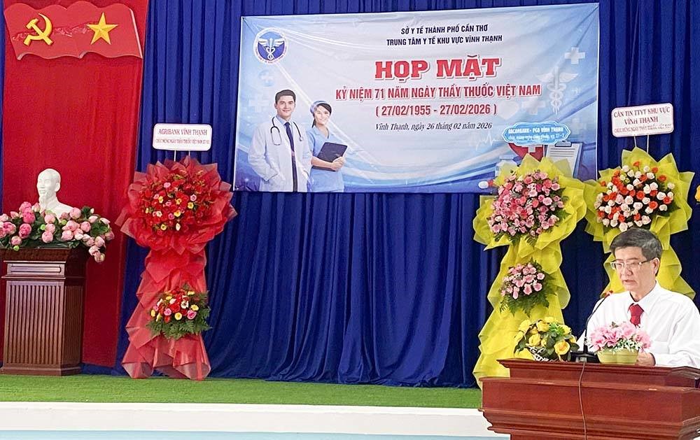 Hòa chung không khí cả nước hướng về Ngày Thầy thuốc Việt Nam (27/2), Trung tâm Y tế khu vực Vĩnh Thạnh long trọng tổ chức họp mặt kỷ niệm 71 năm Ngày Thầy thuốc Việt Nam (27/2/1955 – 27/2/2026). Đây là dịp để toàn thể cán bộ, viên chức, người lao động của đơn vị cùng ôn lại truyền thống vẻ vang của ngành Y tế, tri ân những thế hệ thầy thuốc đã và đang cống hiến thầm lặng cho sự nghiệp chăm sóc, bảo vệ và nâng cao sức khỏe Nhân dân.