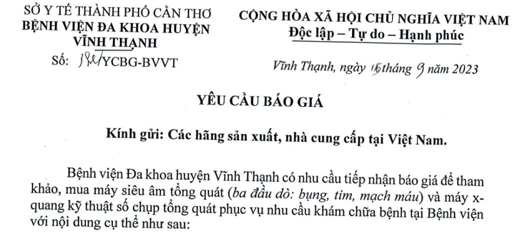 Yêu cầu báo giá máy Siêu âm, máy X quang kỹ thuật số.